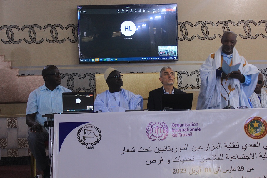 La salle de réunion de la Mairie de Teyarett (Nouakchott-Nord) a abrité, le 29 mars 2023, le 2ème Congrès du Syndicat des Agriculteurs de Mauritanie (SAM), avec l’appui de plusieurs partenaires, dont le Bureau International du Travail (BIT), Save The Children et Via Campesina (voix des paysans). Au cours de cette rencontre de quatre jours, les instances dirigeantes ont été élues avec la reconduction du Secrétaire général du syndicat, Dawa Ould Moustahdi.